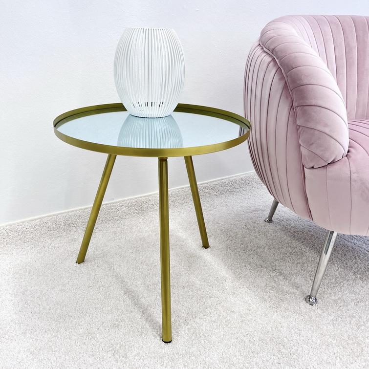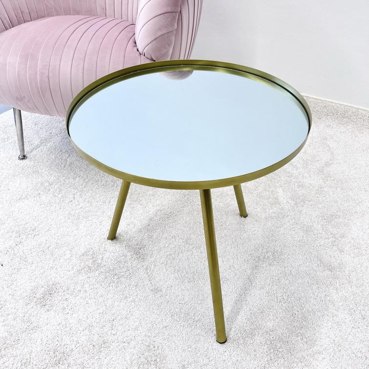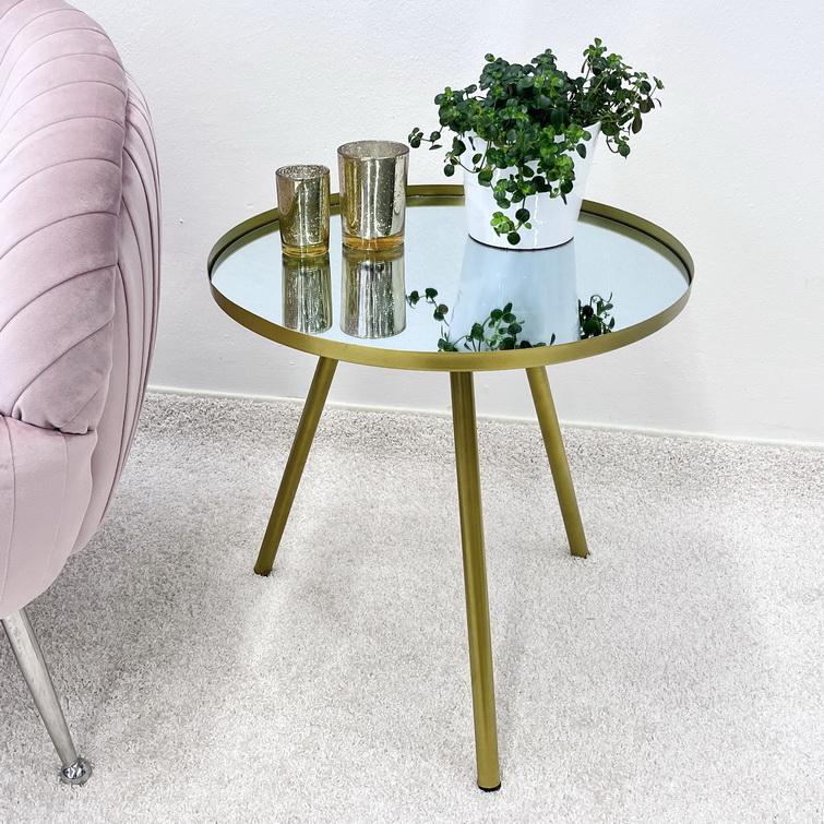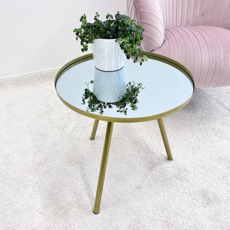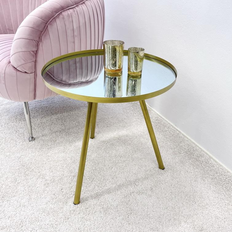 Beistelltisch Test2 | Runder Spiegeltisch, Tablettisch, Wohnzimmer, Gold-Finish, Metallgestell, Moder